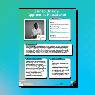 Explore virtual stands showcasing STEM organisations offering apprenticeships